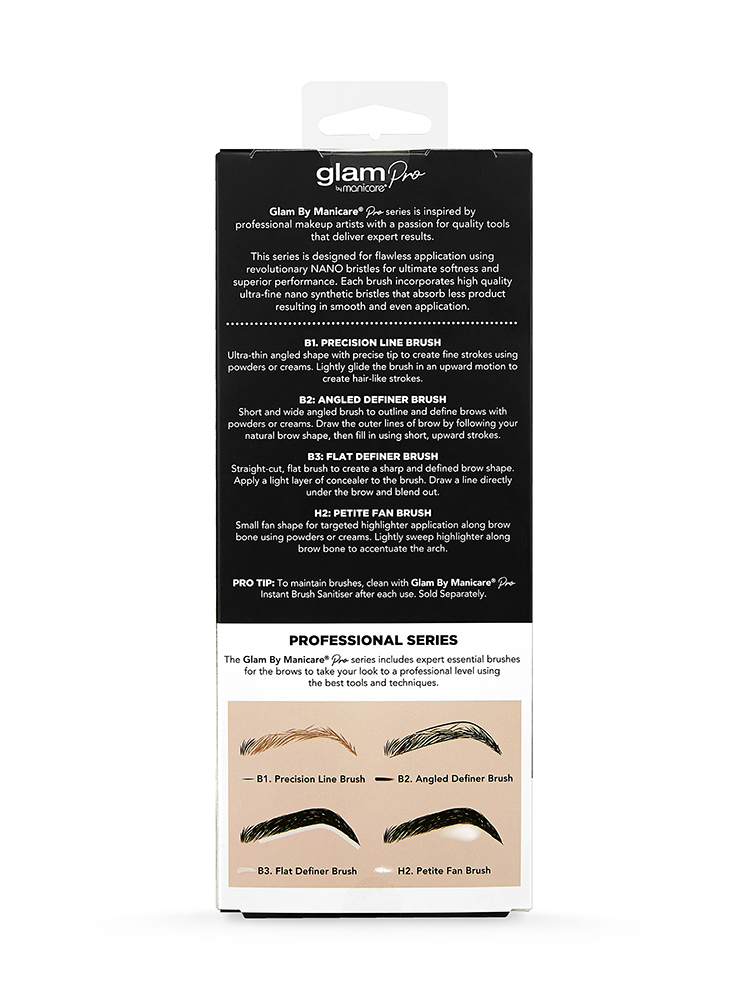 Glam By Manicare® Pro series is inspired by professional makeup artists with a passion for quality tools that deliver expert results. This series is designed for flawless application using revolutionary NANO bristles for ultimate softness and superior performance. Each brush incorporates high quality ultra-soft nano synthetic bristles that absorb less product resulting in smooth and even application.