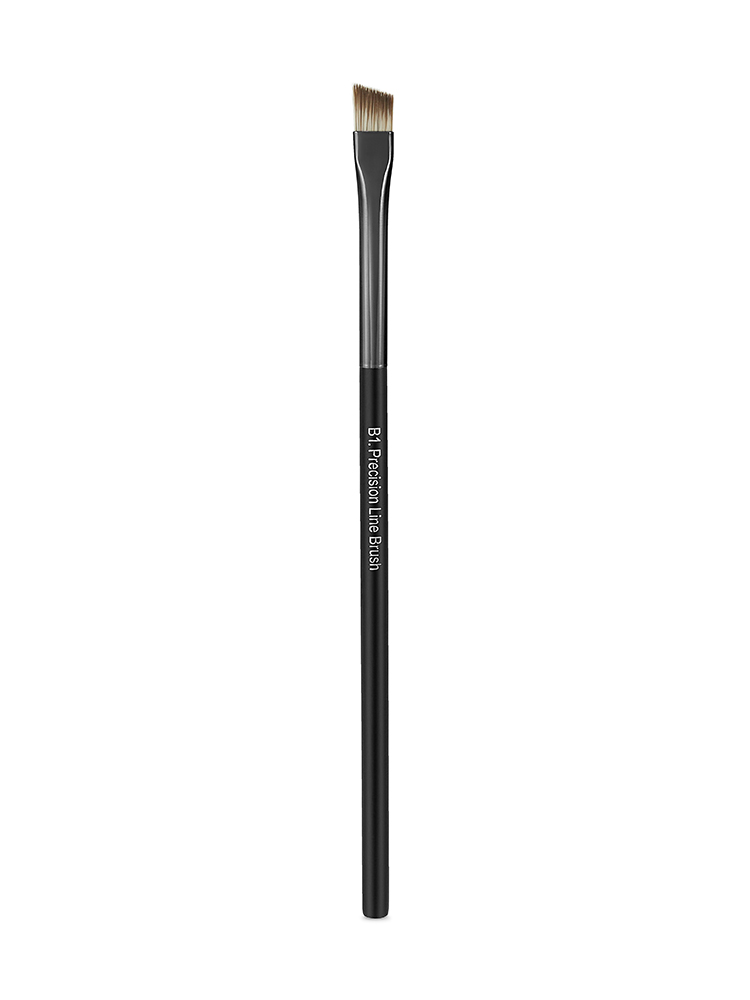 B1. Precision Line Brush: Ultra-thin angled shape with a precise tip to create fine strokes using powders or creams. B2. Angled Definer Brush: Short and wide angled brush to outline and define brows with powders or creams.