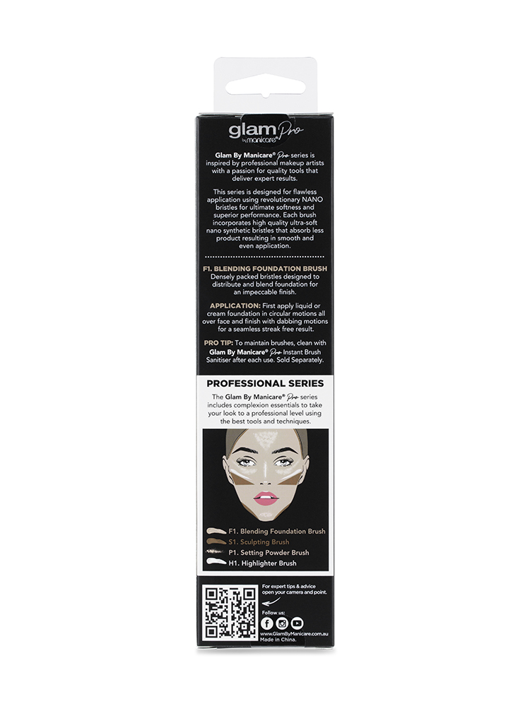PRO TIP: To maintain brushes, clean with Glam By Manicare® Pro Instant Brush Sanitiser after each use. Sold Separately.